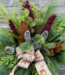 Add some deluxe greens like Magnolia, Oregonia and Red Huck stems, along with some curly willow, and a selection of berries and beautiful decor items to make a signature statement at your entranceway!