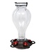 The Clear Balloon Glass Hummingbird Feeder features five flower-shaped feeding ports with a perch ring allowing hummingbirds to rest while feeding.