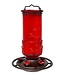 The Red Embossed Glass feeder features five flower-shaped feeding ports with a perch ring allowing h..